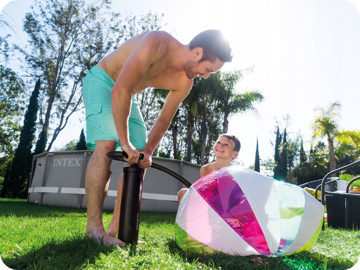 Koniec z godzinami poświęconymi na mozolne pompowanie i wypompowywanie materacy metodą usta – ustnik. Dzięki pompce nożnej marki Intex z 3 wymiennymi końcówkami w ekspresowym tempie napompujesz dmuchany materac, ponton czy jakiekolwiek inny produkt dmuchany. Jej kolejnym atutem jest możliwość pompowania powietrza w obie strony - zarówno przy ruchach w górę jak i w dół. Dzięki temu udogodnieniu czas pompowania i oczekiwania na gotowość dmuchanych przedmiotów do użytku znacznie się skraca. Ale to nie koniec licznych walorów tej pompki. Posiada ona bowiem także długi, elastyczny przewód ułatwiający dotarcie do trudno dostępnych zakamarków.