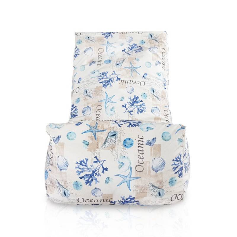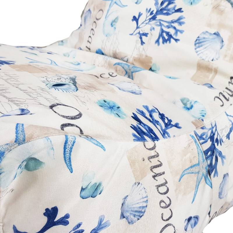 Delikatny, a zarazem wyrazisty design pokrycia, jakim wyróżnia się nasz fotel sako, będzie świetnym wyborem dla każdej aranżacji, w której pojawiają się marynistyczne elementy. Powtarzające się wzory muszli, rozgwiazd i wodorostów zachęcają, by pozwolić sobie na chwilę zapomnienia, przenosząc się marzeniami na wakacyjną plażę. Ten jedyny w swoim rodzaju fotel z oparciem przyda się w przestronnym salonie, w sypialni, a nawet w domku letniskowym - zwłaszcza nad morzem!