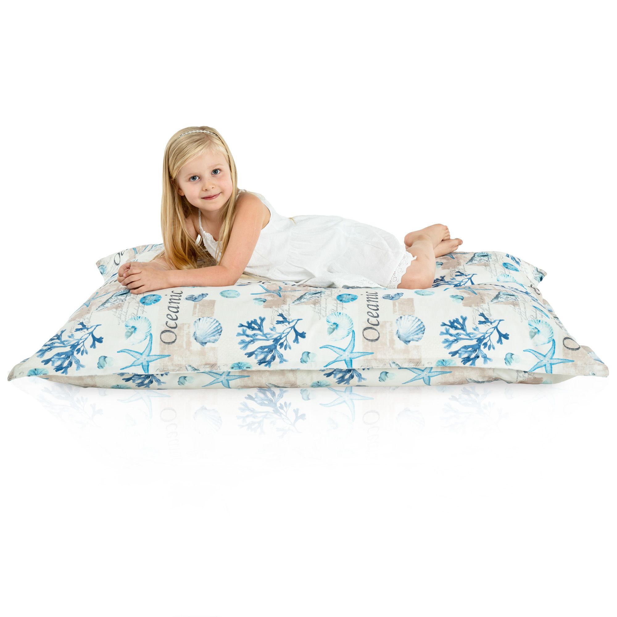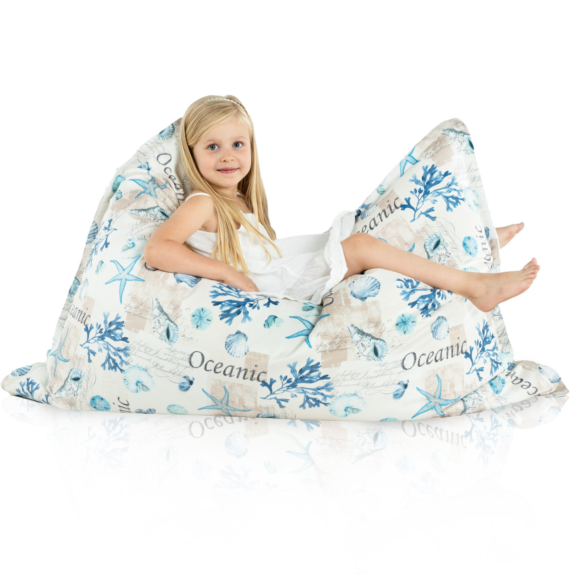 Prezentowana poducha Ocean doskonale sprawdzi się w salonie, w sypialni, czy w domowym kąciku do czytania. Wykonana z najwyższej jakości materiałów, takich jak pierwszogatunkowy granulat styropianowy i delikatny dla skóry, niealergizujący materiałowy pokrowiec, poducha nada naszemu wypoczynkowi nowy wymiar.